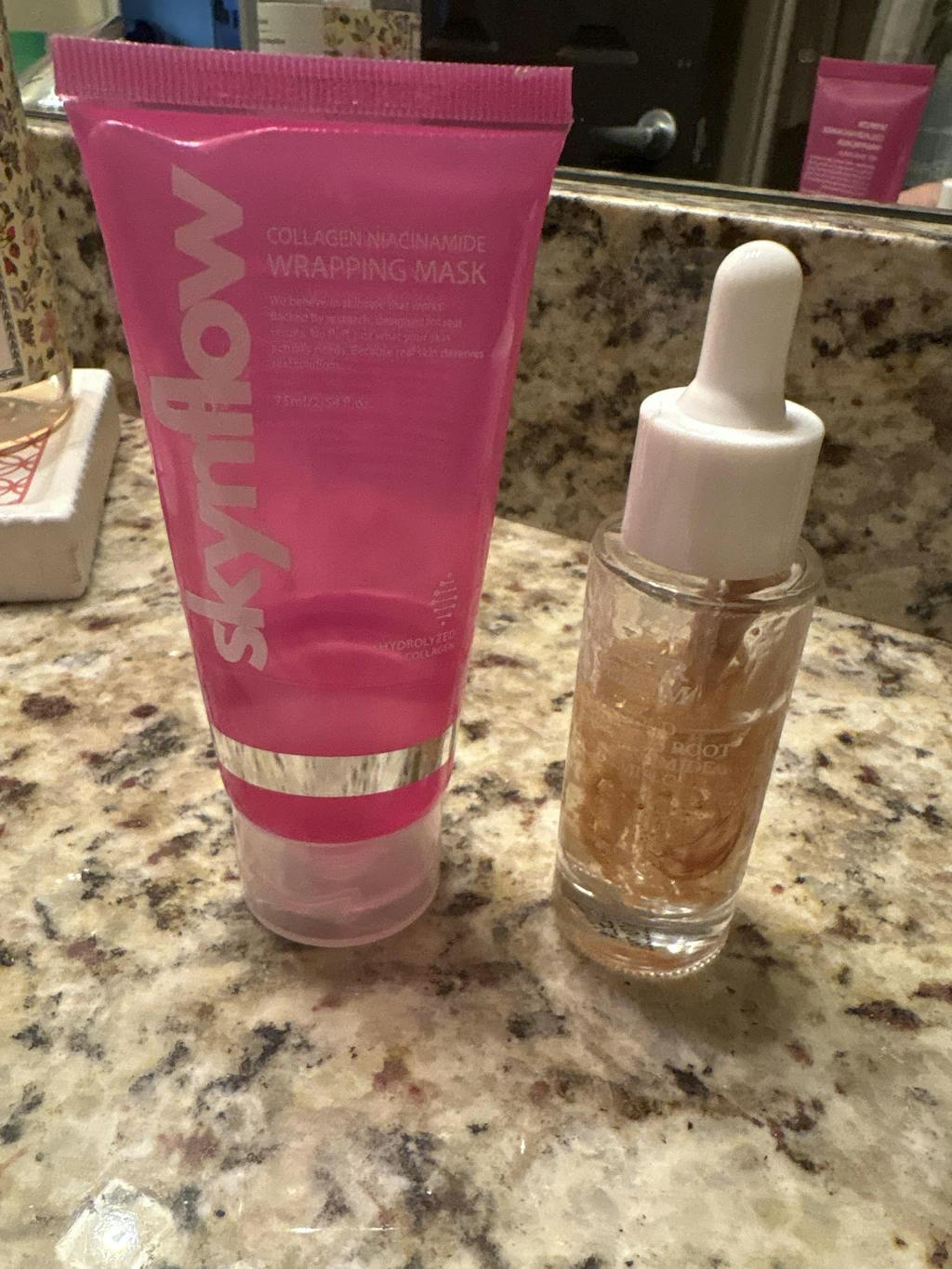 The gold flakes absorb beautifully into the skin thanks to their soluble formula. Just massage the serum in gently, and they will dissolve into the skin—leaving a radiant, slightly shimmering glow on your face.
